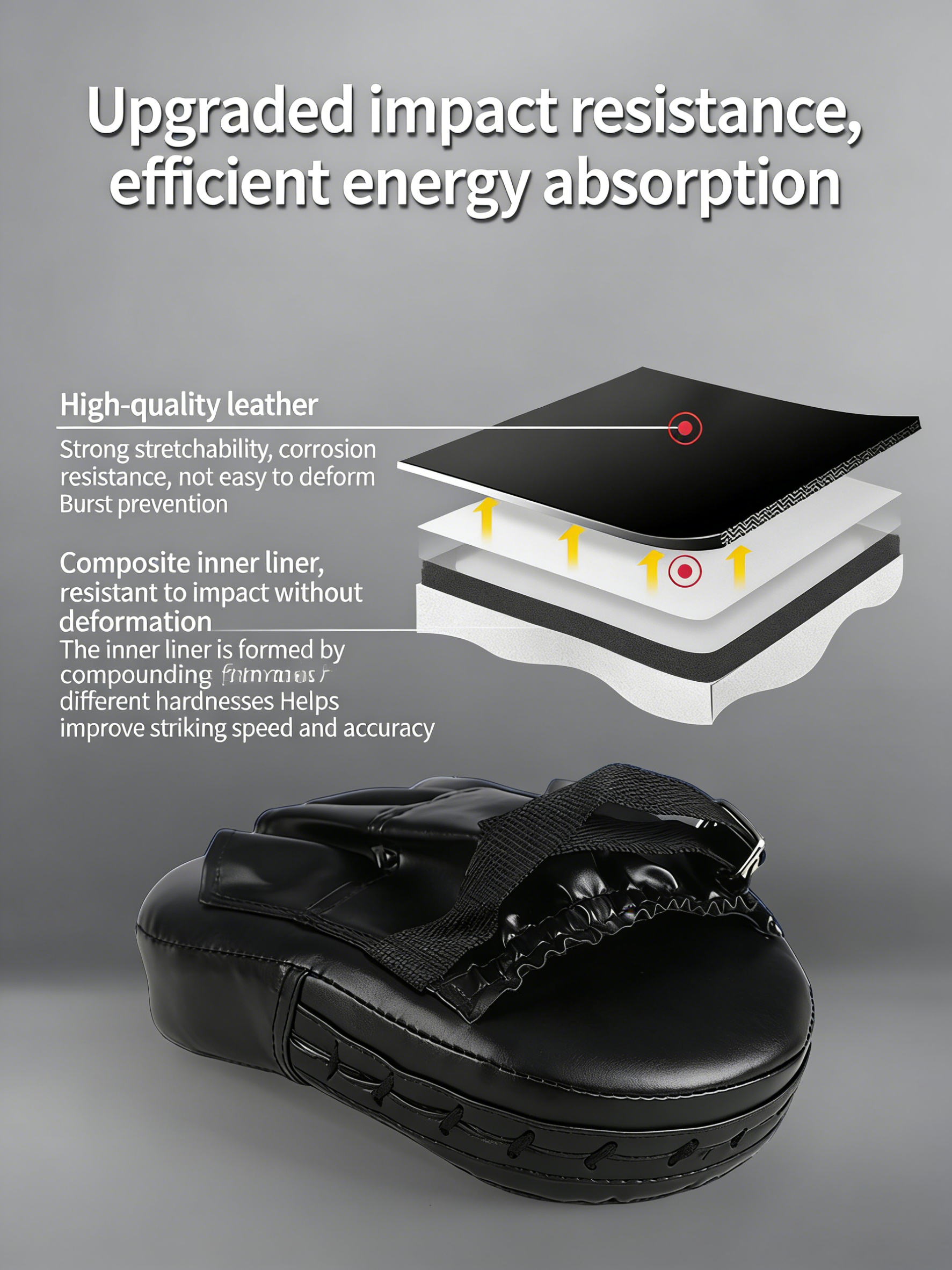4. The curved design conforms to the striking trajectory, distributing force evenly, making it suitable for daily training.