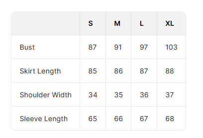 - Available sizes: S/M/L/XL