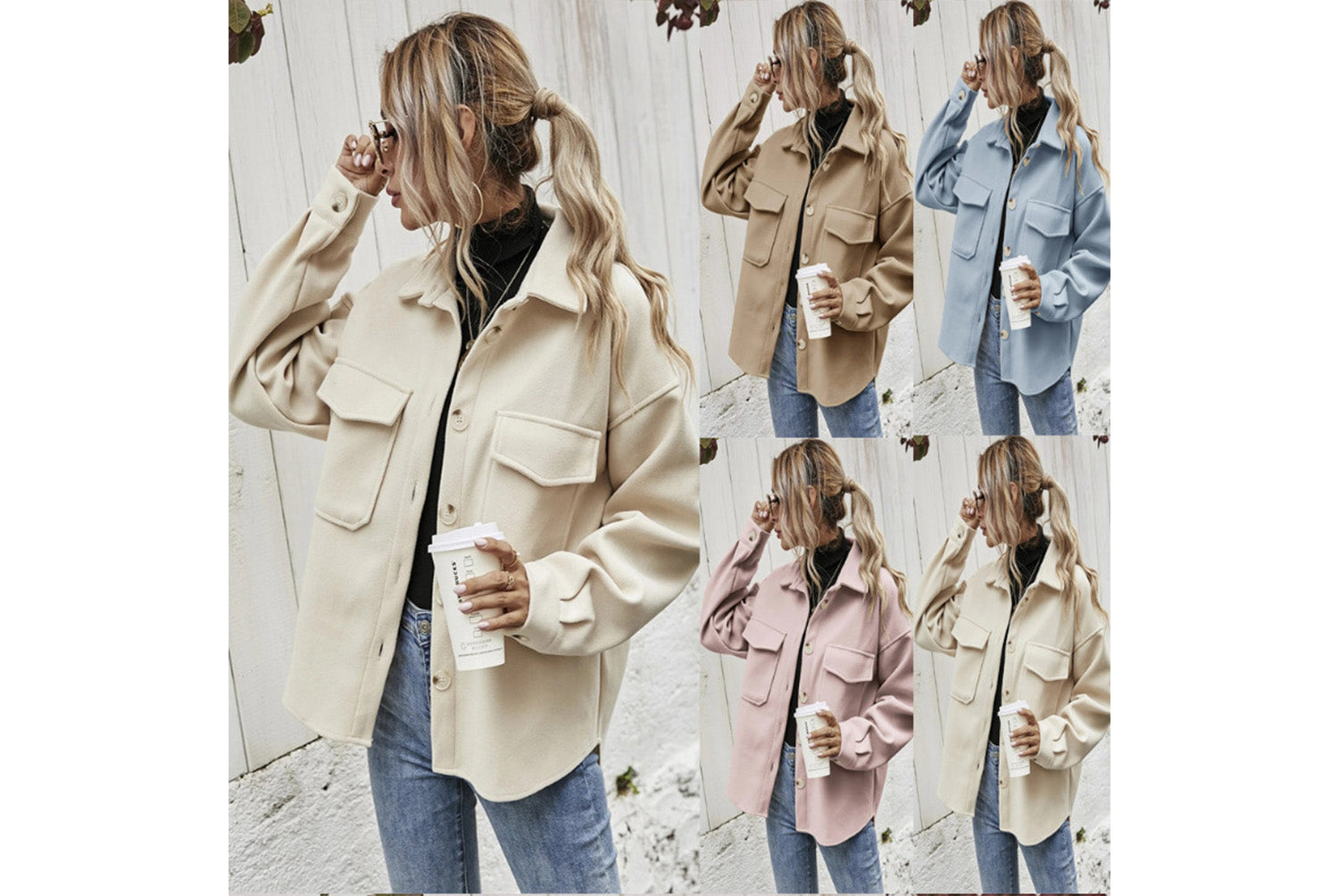 **Lapel, Single-Breasted | Thickened Solid Color Woolen Loose Jacket**